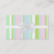 This pretty business card is perfect for any business or occupation. It features green, pink, blue, and white stripes on the front. A ribbon and bow run through the centre. A graphic of an opal sits in the centre of the bow. The back is a solid green. All text is customizable.