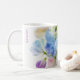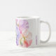 A delicate bouquet of sweet pea flowers in soft pastel hues blooms from a translucent glass vase. Flowers range from pale lavender and blue to gentle pinks and creams, creating a harmonious blend of colours. Green stems and buds add a fresh touch to the arrangement. The vase sits atop a subtle watercolor wash background, enhancing the dreamy, ethereal quality of the design. Personalize with a name or initials.