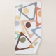 This towel set has a gold washcloth, a green hand towel, and a bath towel with a mid-century modern design of rounded triangles with white centres and ovals in the middle. Want different colours? Message me.
