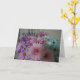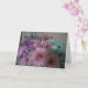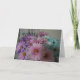 Still life photography, of a bouquet of flowers in a trio of pastel colours, and a greeting for a friend comprise this card.