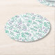 Pastel watercolor branches purple and green round paper coaster