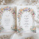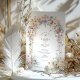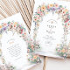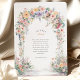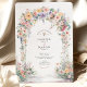 Invite your guests with a soft, romantic fine-art watercolor design featuring an airy floral arch overflowing with blush roses, peach blooms, lilac accents, delicate wildflowers, and fresh sage greenery. The composition frames the text with a light, hand-painted feel; transparent washes, gentle layering, and botanical details that look like a garden illustration on bright white paper.
