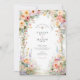 Invite your guests with a soft, romantic fine-art watercolor design featuring an airy floral arch overflowing with blush roses, peach blooms, lilac accents, delicate wildflowers, and fresh sage greenery. The composition frames the text with a light, hand-painted feel; transparent washes, gentle layering, and botanical details that look like a garden illustration on bright white paper.