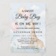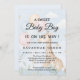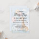 Charming baby boy shower invitation featuring a friendly watercolor giraffe holding pastel balloons on a soft light-blue background. Puffy white clouds, yellow stars, and subtle green foliage frame the design, leaving ample space for custom event details. This balanced and joyful invitation is perfect for modern baby showers, blending playful watercolor elements with an elegant, inviting style.