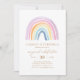 Celebrate your little one's magical day with this watercolor pastel rainbow birthday invitation.