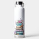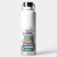 PASTEL WATERCOLOR STACK OF BOOKS WITH BUTTERFLY WATER BOTTLE