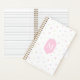 This pretty notebook features a floral watercolor design with a pattern of dainty, whimsical floating wildflowers in shades of pastel pink, blue, peach, lilac, and yellow. This is a small notebook that can be used as a standard journal or even as a bullet journal. It can also be personalized with the monogram of the recipient, making it a great gift for her, whether for moms or girls going back to school.