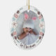 Elegant soft pastels baby's first Christmas photo ornament, with beautiful winter floral accents. Personalize all the text to read what you want. The front is ready for your baby's photograph too!. Lovely Christmas ornament, great for new parents and grandparents.