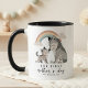 This mug presents a soft pastel illustration of a wolf mother and her pup placed under a muted rainbow. The simple composition highlights their connection through a calm and affectionate pose. Names and a year are included in the layout, adding a meaningful detail for a first Mother’s Day. The gentle colors and clean design create a cozy and balanced look.