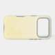 A trendy personalized pastel yellow iPhone case, with a soft gradient design and modern calligraphy script font.
