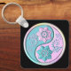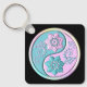 A yin yang symbol is designed with intricate floral patterns in pastel colors. The delicate flowers are complemented by swirling leaves inside the emblem.