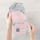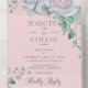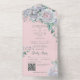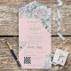 AVAILABLE WTH OR WITHOUT A QR CODE TO SCAN IN THE RSVP AREA. This design has beautiful white floral blooms with periwinkle buds, surrounded by soft greenery. The floral design is placed on a blush pink background. Add a QR code to your invitation so that gusts can quickly access your wedding Website for details, directions, menu options, and more, or add your gift registry Web URL. Personalized All-In-One invitations are a unique combination of both a beautifully printed custom invitation with an easy to tear off perforated RSVP postcard. And they are so easy to use! You simply fold, then seal the back flap with the three included clear stickers, and mail. And when your guests receive your custom invite, they just tear the perforated RSVP Card off and drop it back in the mail to you!