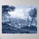 Pastoral Toile III by Claude Lorrain. Features a bridge and pastures done in beautiful inky blue hues.