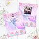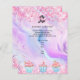 Personalize and add your business logo, name, address, your text. Blush pink, purple, blue pastels holographc bacground decorated with confetti and cupcakes.