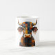 This colorful mosaic patchwork bull graphic mug features a unique animal art design that is perfect for any farmyard lover. The vibrant cow mug is bold and eye-catching, making it a standout piece in your mug cupboard.
