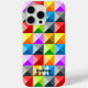 Patchwork Colourful geometric pattern Monogram iPhone 15 Case. Personalize unique fun gift with your initial and name.