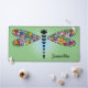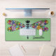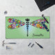 Floral Patchwork Dragonfly Damselfly Design Desk Mat with customizable text and background colour.