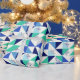 A modern triangle patchwork pattern with snowflakes peeking out from the geometric pattern.