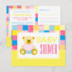 Patchwork Gold Bear, Baby Shower postcard Invitations. Perfect for baby showers and children's birthday parties.