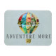 A floral patchwork hot air balloon floats on a pale blue sky with a reminder to all to "adventure more"