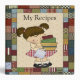 Organize and keep all your recipes in one place with this patchwork country themed recipe binder. This recipe book is available in a 1 inch, 1&1/2 or 2 inch thickness. Originally designed and shown in 2 inch format. Use the wording template to insert your own wording for title. Binder features a patchwork background design on all sides. The front of the binder depicts a cartoon like graphic of a little girl carrying a stack of mixing bowls. Great gift for any food lover, great to coordinate with any country decor kitchen.