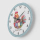 A cute little chicken theme kitchen clock that is personalized with your name. Hen is created in a colourful patchwork patterned design with a tiny polka dot background in blue. Your choice of various styles. See other kitchen decor items in this same design collection.