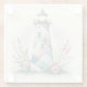 Patchwork Lighthouse Coastal Floral Scene Glass Coaster
