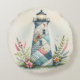 Patchwork Lighthouse Coastal Floral Scene Round Pillow