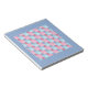 An attractive notepad or jotter, with a cover pattern of patchwork in pink and blue denim colours, from a handpainted watercolour design by Judy Adamson.