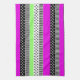 Patchwork of black and white and neon stripes with crimson and green fabric