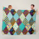 Patchwork Pattern Geometric Plaid Blue Purple Dots Fleece Blanket