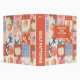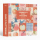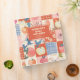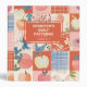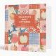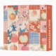 Personalized quilt patterns 3-ring binder with a patchwork design in peach, orange, blue, and cream colours.