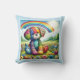This pillow captures the essence of joy and whimsy with a patchwork puppy sitting in the midst of a lush, colourful flower field. Each segment of the puppy's quilted body is a kaleidoscope of patterns and hues, reflecting a cheerful and vibrant personality. A radiant rainbow arches gracefully in the sky, symbolizing hope and dreams, while the bright sunshine adds warmth to the serene landscape. This playful pup invites viewers into a world where imagination blooms as freely as the flowers at its paws. The overall effect is one of happiness, perfect for adding a touch of playful charm to any product.