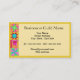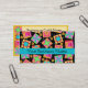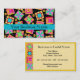 Make an impression with this business card for your quilt business, shop or guild. Coordinate with a matching business card holder. This business card features a quilt block design based on original art by Phyllis Dobbs. The design features favourite patchwork quilt blocks such as a log cabin, pinwheel, star plus unique blocks created in vibrant and dynamic colours that pop on black background. The colours are fuchsia pink, orange, turquoise, yellow, red, black and green. Fully customizable for all your business and contact information.