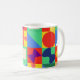 This mug has a Bauhaus design of larger squares with odd shapes inside, repeated across the design.
