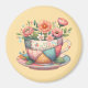 A charming fusion of cozy cottagecore and nostalgic patchwork, this design features a teacup bursting with whimsical florals in soft, pastel hues. Each panel of the teacup is adorned with vintage-inspired fabric patterns—plaids, florals, and polka dots—stitched together with visible seams for a handmade, quilt-like look. The surrounding flowers bloom in gentle tones of coral, blush, and cream, adding warmth and a touch of fantasy. Set against a harmonious blend of soft greens and delicate blues, the composition evokes a sense of comfort, creativity, and slow-living aesthetics. Ideal for those drawn to floral whimsy, retro patterns, and the charm of handcrafted motifs. AI generated artwork.