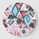 Vintage patchwork style pattern features flamingos and palm leaves.