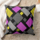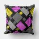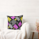 Patchwork with polka dots and stripes purple yello throw pillow