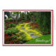 Vue sur un joli jardin. Chemin argenté traversant des champs de belles fleurs rouges et jaunes, de palmiers et de cyprès. Eau. Photo prise à Flor et Fjaere Park, région de Stavanger, Norvège. Ensemble complet de cadres divers inclus, n'hésitez pas à jouer avec de nouvelles couleurs et des effets! Le texte peut facilement être customisé ou supprimé.