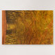 Vertical photo jigsaw puzzle of a walking path through the golden beech trees in a forest in autumn colours in fall season in the Netherlands.