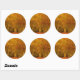 Round photo sticker of a walking path through the golden beech trees in a forest in autumn colours in fall season in the Netherlands.