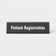 You can personalize this name plate with your custom text (shown: Patient Registration). The display text is white. The name plate is black.