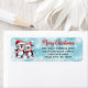 Ces étiquettes d'adresse de retour de Noël bleues et rouges personnalisées comportent le "Joyeux Noël" en caractères de caractères de script et quelques patins à glace pingouins mignons en vêtements rouges. Le modèle vous permet de taper facilement votre adresse avant de commander.