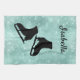 Serviette personnalisée en patinage de glace turquoise pour patineur artistique - un cadeau utile pour sécher les pales après l'entraînement.Couleurs: Un arrière - plan noir sur un brillant vert turquoise.Design: Paire de patins à silhouettes + personnalisation avec le nom du patineur de glace.