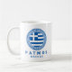 Patmos, Greece coffee mug featuring the national flag of Greece inside a Greek key pattern blue circle design. This mug is perfect for you to enjoy drinking your coffee while you are on vacation in Patmos, Greece or if you are proud to be from Patmos.