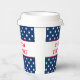 Patriot custom paper cups with American star flag pattern. Disposable party supplies with navy blue or custom colour. Double sided print with personalized text. Elegant design for Birthday, wedding, bridal shower, engagement, anniversary, baby shower, BBQ, office party, 4th of July and more. Modern typography. Great for coffee and other drinks.
