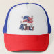 Show your American pride with this vibrant 4th of July trucker cap. It features a stylish embroidered design of a waving American flag surrounded by festive fireworks, with "4th July" prominently displayed. The classic red, white, and blue colours make it perfect for celebrating!