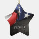 A true keepsake proud to be an American features a folded flag and saying "God Bless America" in modern font ornament.