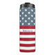 Patriotic American flag tumbler featuring the Stars and Stripes in Red, White and Blue. Customize by adding your name or custom text.