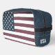 Patriotic American flag custom travel toiletry bag. Stars and stripes design. Vintage US flag of United States of America. Personalize with name or monogram optionally. Colours can be changed too.